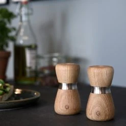 Salt- och pepparkvarnen Kyoto från danska CrushGrind® har en utformning i ekträ med mjuka kurvor, och en dekorativ ring i rostfritt stål som ger den ett exklusivt utseende. Kontrasten mellan de organiska trädelarna och den borstade stålytans precision ger kvarnen en lyxig känsla som särskiljer den från traditionella träkvarnar. Självklart har kvarnen den patenterade kvarnmekanismen från CrushGrind®, som ger dig ett perfekt resultat varje gång. Du får en snygg dekoration för köksbordet eller köket, samtidigt som du enkelt sätter pricken över i på dina rätter. Finns i två olika storlekar, med en höjd på antingen 10 eller 17 centimeter.