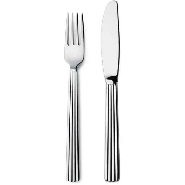 Detta vackra och klassiska bestickset frÄn Georg Jensen Àr en del av Bernadotte-kollektionen, designad av Sigvard Bernadotte som föddes som svensk prins men som sedan blev greve efter giftermÄl. Och bÄde kÀrleken och romantiken frÄn denna historia Àr tydligt förankrad i Bernadotte-besticken. HÀr i en dessertutgÄva med klassiska rÀnder och skinande, blankt stÄl som utstrÄlar elegans och exklusivitet. Setet innehÄller 8 delar, 4 gafflar och 4 knivar sÄ att hela familjen eller gÀsterna alla fÄr njuta av en lÀcker dessert.