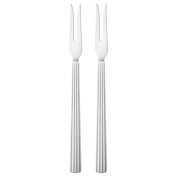 Set om två gafflar för kallskuret ur kollektionen Bernadotte från Georg Jensen. Gafflarna är designade av Sigvard Bernadotte och har de ikoniska räfflorna som kännetecknar hans kollektion. Tack vare sin smakfulla design ligger gafflarna fint i dukningen och de passar perfekt för smakrika aptitretare. Tillverkade i putsat rostfritt stål. Tål maskindisk.