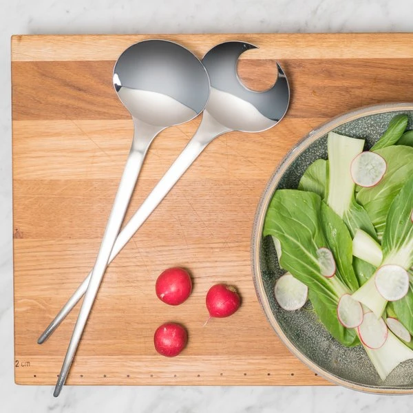 Serveringsset frÄn Global bestÄende av en gaffel och en sked i rostfritt stÄl. Den stilrena och moderna designen gör setet perfekt nÀr du vill imponera pÄ dina gÀster med en vacker sallad.