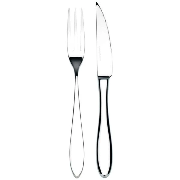 HardangerBestikk lanserar ett stekbestick i den populÀra serien Fjord, besticket Àr speciellt utformat med tanke pÄ handens ergonomi, Kniven Àr skarp och kvalitén i stÄlet gör att den hÄller sig skarp efter tidens gÄng.
