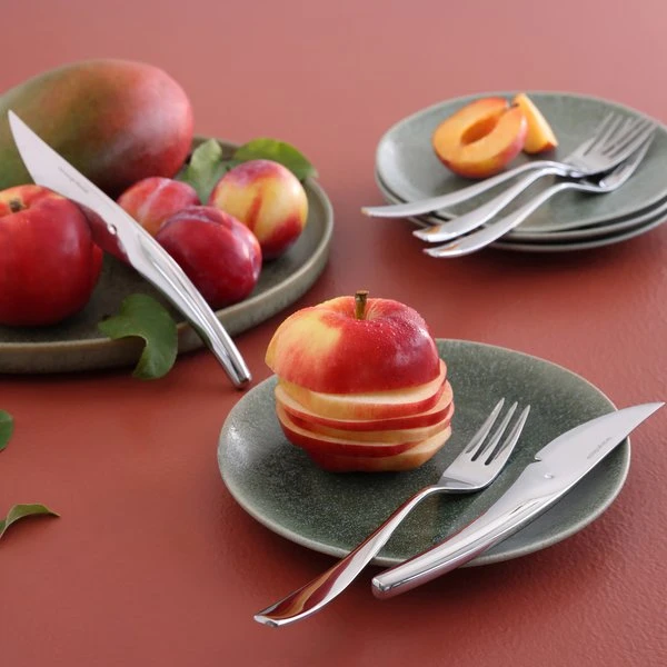 Fruktknivar frÄn Hardanger Bestikk designade av Per Finne, som du kan anvÀnda för att bÄde skala och skÀra frukt & grönt. Knivbladet Àr tillverkat av rostfritt stÄl för att stÄ emot fruktsyra och Àr designat sÄ att kniven gör det lÀttare att skÀra frukt och grönsaker mer exakt. Ytan har en polerad finish som ger knivarna ett elegant utseende. Fruktknivarna levereras i presentförpackning. Att leva hÀlsosammare har aldrig varit sÄ funktionellt och vackert.