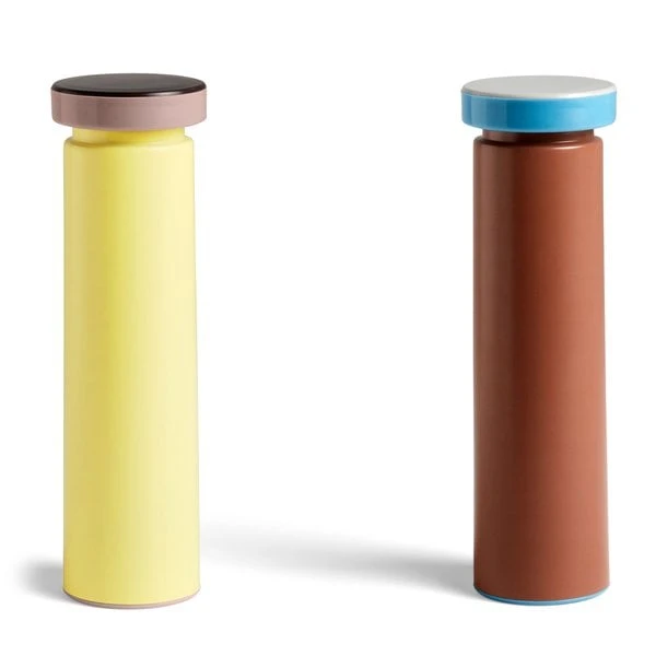 Snygg salt- och pepparkvarn, som bĂ„de Ă€r praktisk och fungerar som en vacker inredningsdetalj. Kvarnens utsida Àr tillverkad i stilrent rostfritt stĂ„l, och insidan av keramik Ă€r justerbar sĂ„ att du kan fĂ„ kornen till precis den storlek du vill ha. Formgiven av George Sowden för danska HAY. Finns i tvĂ„ storlekar och i flera olika fĂ€rger.Â