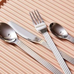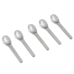 Set om fem snygga teskedar från serien Sunday, designade av den schweiziska studion BIG-GAME för HAY. Seriens främsta kännetecken är den stilrena formen och det karaktäristiska räfflade handtaget – perfekt för att duka vackert både till vardags och till fest. I serien finns utöver teskedarna även matknivar, gafflar, matskedar, latteskedar och serveringsskedar.