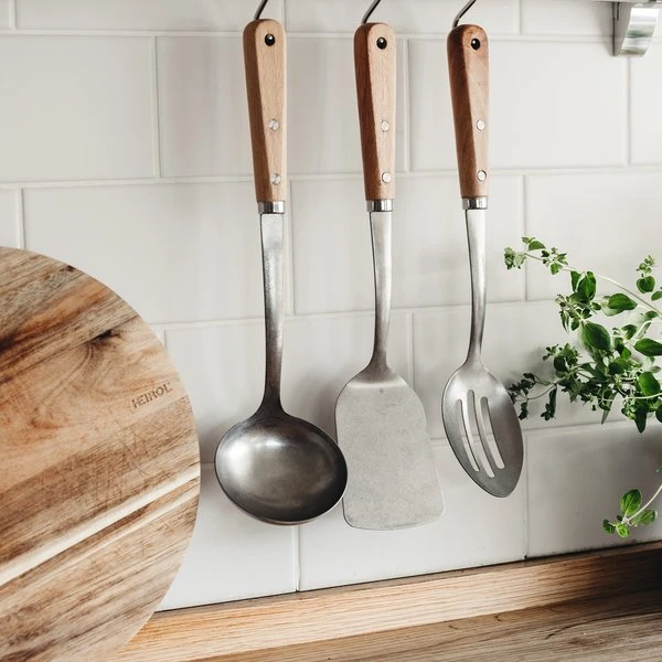 Serveringssked i rostfritt stÄl och med skaft av bok. Det vackra stÄlet har en antik yta vilket bidrar till en elegant patina. Detta köksredskap Àr inte bara vÀldigt praktiskt utan Àven tillverkat för att hÄlla i mÄnga Är.