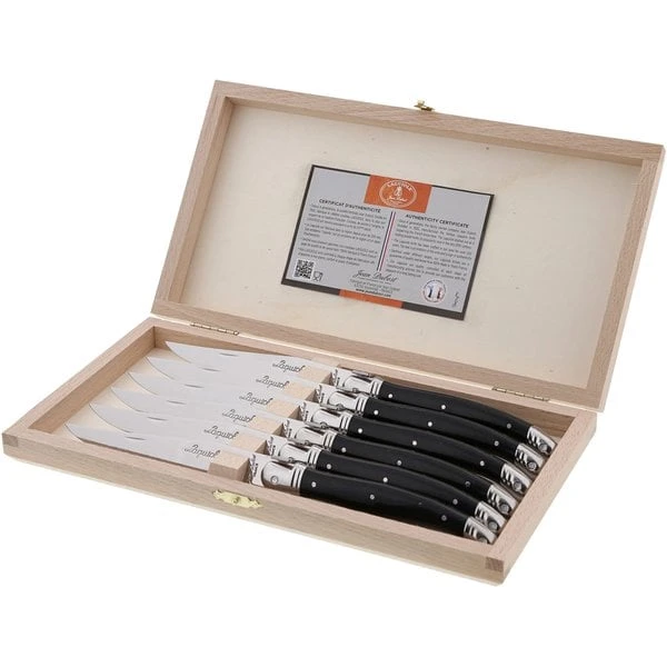 Laguiole-knivar som Ă€r tillverkade av franska Jean Dubost – för dig som Ă€r ute efter handgjorda knivar av allra högsta kvalitĂ©. Tillverkade i rostfritt stĂ„l och med en stilren design. Passar ypperligt vid middagsbordet nĂ€r det Ă€r dags att servera delikatesser. Knivarna Ă€r enkla att rengöra och tĂ„l diskmaskin. Det speciella med Jean Dubosts Laguiole-knivar Ă€r att tillverkningsprocessen stĂ€ndigt förbĂ€ttras för att enbart innehĂ„lla de bĂ€sta rĂ„varorna som sedan fĂ€rdigstĂ€lls med stor precision i över 25 olika manuella produktionssteg.Â