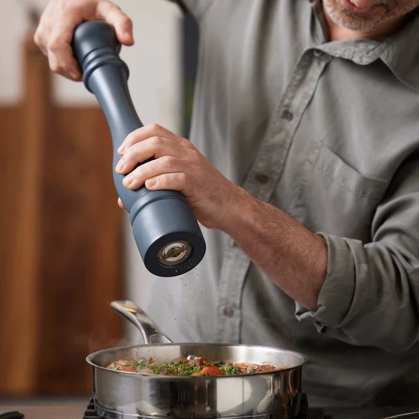 Förgyll dina favoritrecept med smaken av nymald peppar med den hĂ€r pepparkvarnen i serien Himalaya frĂ„n Kitchenware by Tareq Taylor. Kvarnen Ă€r tillverkad av FSCÂź-certifierat akaciatrĂ€ med en keramisk kvarninsats av hög kvalitet. Du justerar enkelt malningsgraden pĂ„ toppen av kvarnen, sĂ„ att du kan bestĂ€mma sjĂ€lv hur grovt eller fint du vill mala. Kvarnen Ă€r 40 centimeter hög och har en diameter pĂ„ 7,5 centimeter. Rengör genom att torka av med fuktig trasa. VĂ€lj bland tre olika fĂ€rger â Indigo, Svart eller Forest Green.