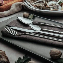 Besticken har ett tidlöst, skandinaviskt formspråk med vacker blank finish och är tillverkade av 18/10 rostfritt stål av hög kvalitet som håller länge. Kan med fördel kombineras med matchande förrätts-, skaldjurs- eller serveringsbestick. Alla setets delar tål maskindisk.
