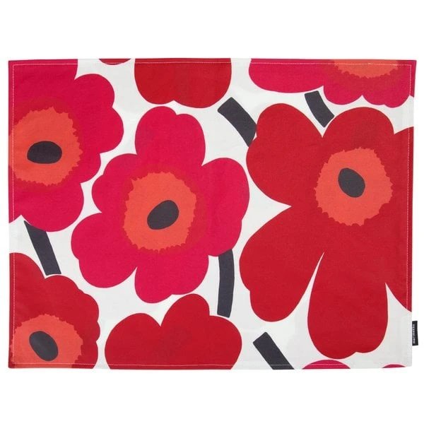 Låt Marimekkos berömda vallmomönster pryda matbordet och duka med Pieni Unikko-bordsunderläggen i vitt och rött. Pieni Unikko betyder ”liten vallmo” på finska, vilket syns tydligt i det ikoniska blomstermönstret som idag är vida känt världen över.