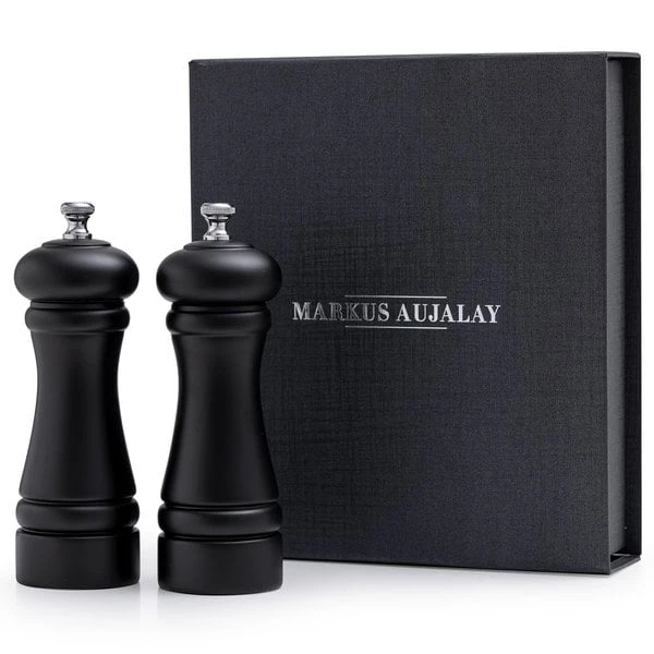 Köp denna salt- och pepparkvarn frÄn Markus Aujaly. De har en matt finish och har en design som gör dem mycket enkla att anvÀnda. Pepparkvarnens verk Àr av högsta kvalitet av carbon stÄl och saltkvarnen har ett keramiskt verk för att slippa rost. De Àr mÀrkta med Markus Aujalays logo i bottnen. De Àr 17 cm. höga och kommer i en exklusiv presentlÄda.