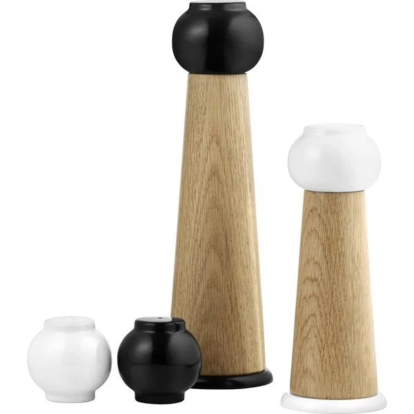 Krydda som ett proffs med denna imponerande pepparkvarn frĂ„n Normann Copenhagen! Den snygga designen Ă€r influerad av vin- och öltunnor, vilket ger kvarnen ett distinkt och unikt utseende. Den Ă€r en del av serien Barrel, som skapats i samarbete med Tivoli i Köpenhamn. Den magiska platsens aura har satt sin prĂ€gel pĂ„ produkterna pĂ„ ett utomordentligt sĂ€tt – hĂ€r finns mycket att Ă€lska! Pepparkvarnen i centrum Ă€r av den större modellen, och har en lite knubbigare siluett som Ă€r visuellt tilltalande. Basen Ă€r gjord i kvalitativt ektrĂ€, och toppen av tidlöst porslin. Pepparkvarnen har fĂ„tt en svart fĂ€rgton som matchar innehĂ„llet och gör det enklare att skilja mellan salt- och pepparkvarn.Â