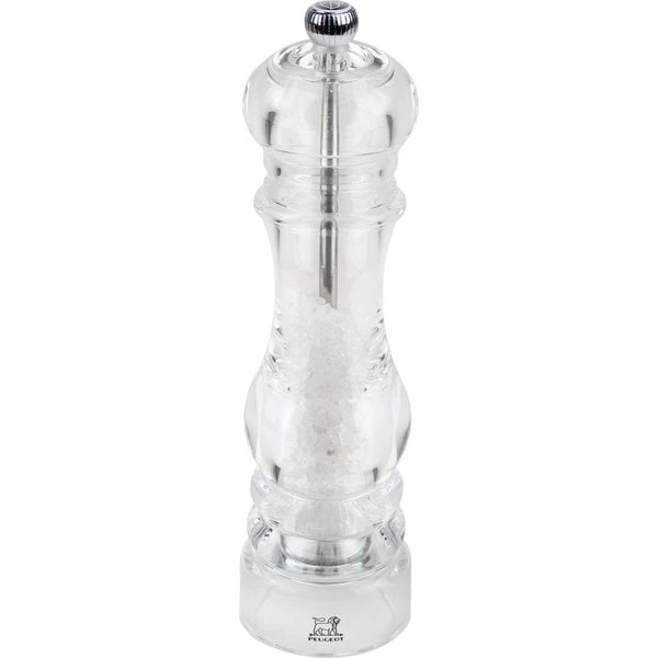 Peugeot Saltkvarn i genomskinlig akrylplast. Modern design som ger dig full kontroll över kryddnivån i kvarnen.