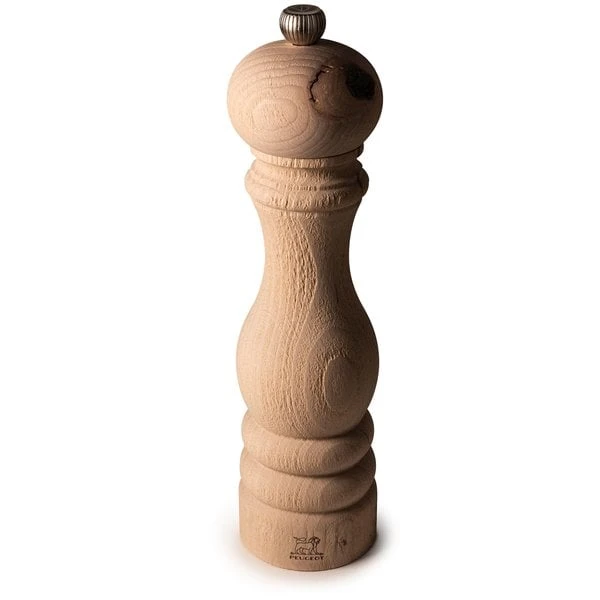 Med sin diskreta och ergonomiska design Àr saltkvarnen Peugeot Paris lÀtt att kÀnna igen över hela vÀrlden. Saltkvarnen har en naturlig fÀrg och ett underbart skulpterat och organiskt utseende. Kroppen pÄ denna manuella saltkvarn Àr gjord av trÀ som vanligtvis kasseras under tillverkningen, men i denna kollektion tar Peugeot hand om allt material.