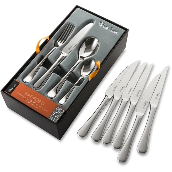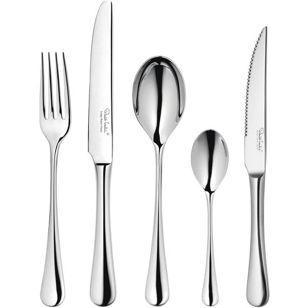 Radford bestickset frĂ„n Robert Welch har en klassisk design som garanterat kommer dekorera det dukade bordet. Setet innehĂ„ller de klassiska 24 delarna, samt 6 extra stekknivar. Du fĂ„r alltsĂ„ 30 delar: 6 gafflar, 6 knivar, 6 skedar, 6 teskedar och 6 stekknivar.Â