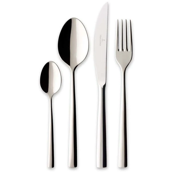 Det smarta besticksetet i rostfritt stÄl har 4 delar och kommer frÄn Villeroy & Bochs kollektion Piemont. Setet bestÄr av en matsked, en matkniv, en matgaffel och en tesked.