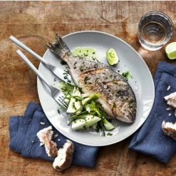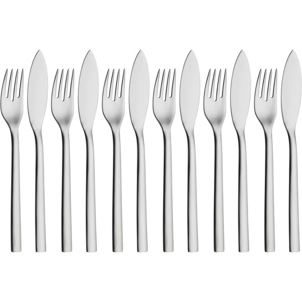 Med dessa fiskbestick fÄr du en gaffel och kniv helt anpassade till fiskrÀtter. Fiskkniven anvÀnds till att separera ben och fiskgaffeln Àr lite bredare Àn en vanlig gaffel och har kortare tÀnder. Detta gör besticksetet det optimala fiskbesticken dÄ bÀgge delar gör att du kan förtÀra fisken enklare.