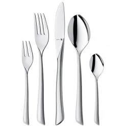 Kreativ och elegant besticksmodell frÄn WMF, som kombinerar kontraster. De asymmetriska och mjuka linjerna skapar en fantastisk och imponerande design. Du fÄr: 6x matskedar, 6x matgafflar, 6x matknivar, 6x teskedar och 6x tÄrtgafflar. Besticksetet ger en komplett och vacker dukning som kan anvÀndas till bÄde fest och vardags.